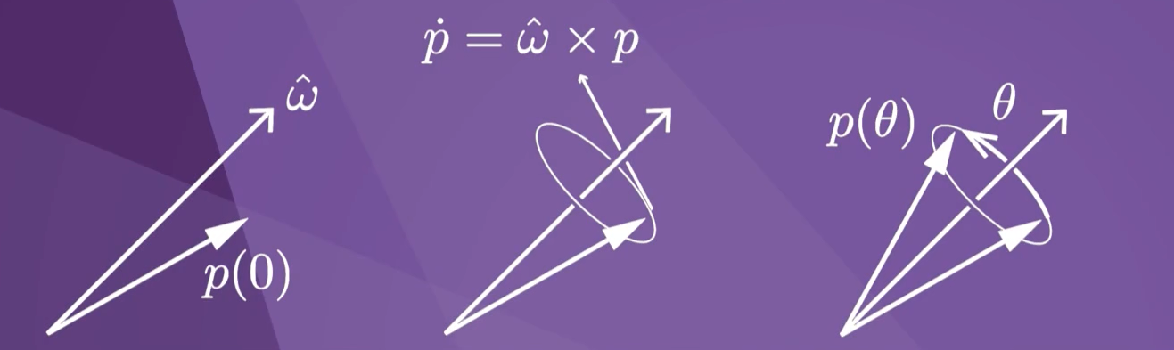 p˙(t)=ω^×p(t)=[ω^]p(t)