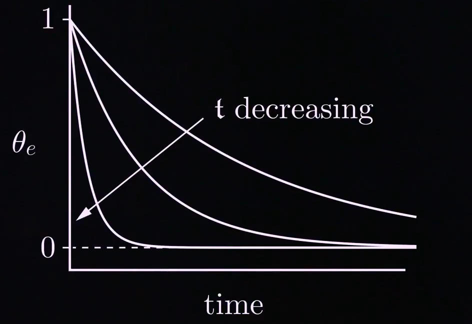 θe(t)=e−t/tθe(0)