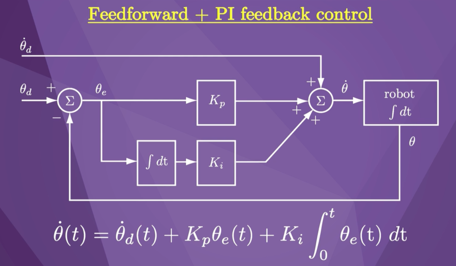 θ˙(t)=θ˙d(t)+Kpθe(t)+Ki∫0tθe(t)dt