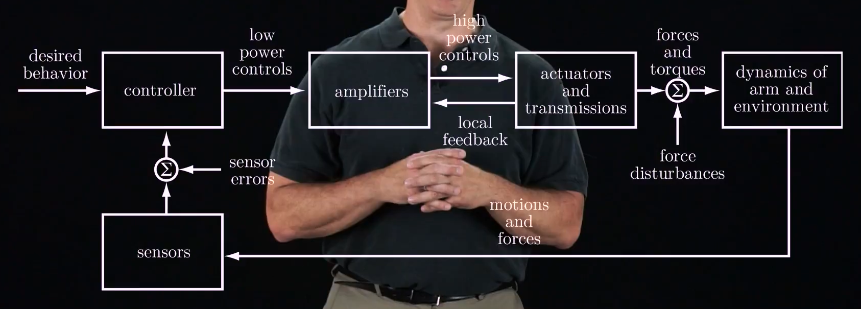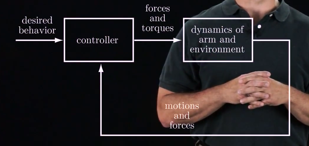 When we model a robot, we usually assume that we have control of the forces and torques at the joints, and the resulting motion of the robot is determined by its dynamics.