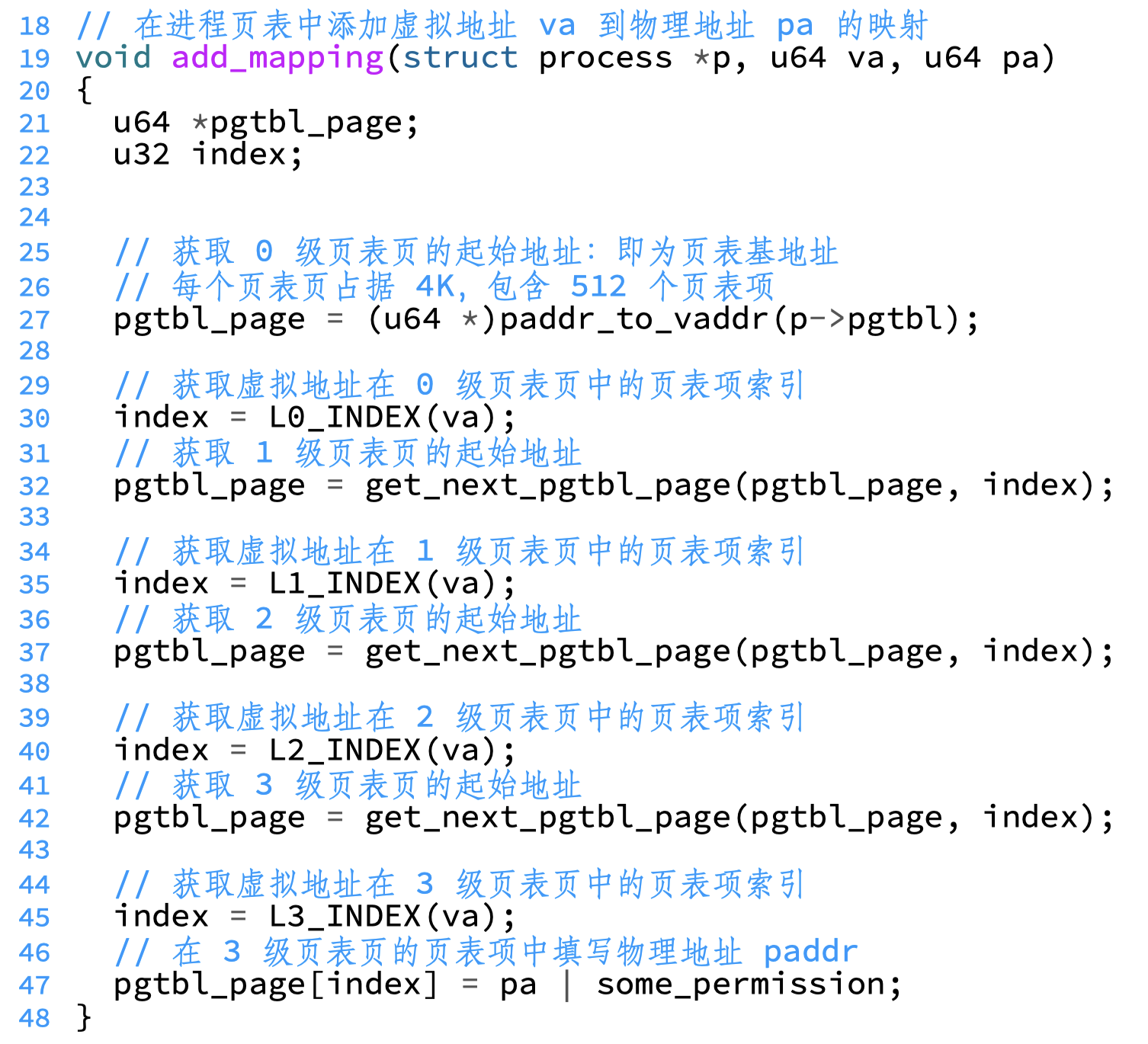- 每个页表项占用 8 个字节,每个页表页有 512 个页表项