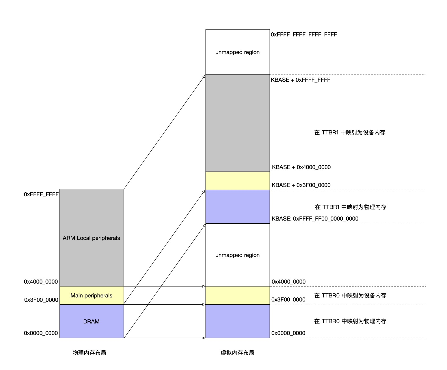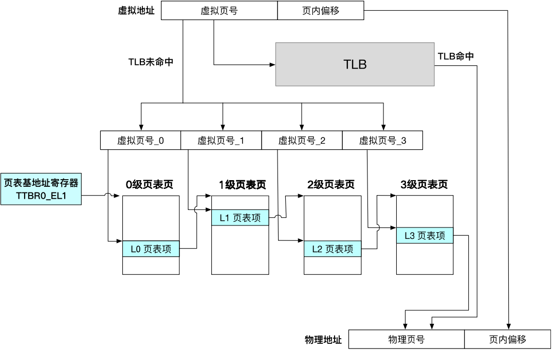 - 以 Linux 为例,应用程序(地址首位为 0)使用 TTBR0_EL1,操作系统(地址首位为 1)使用 TTBR1_EL1
