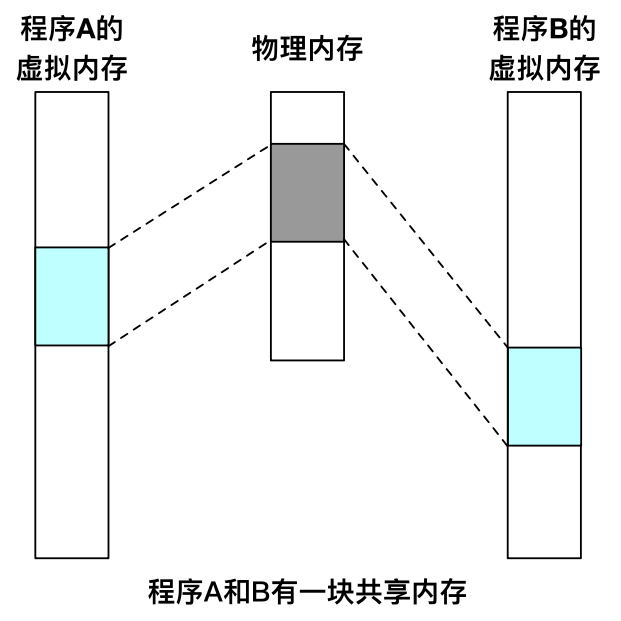 - 可在不同进程之间共享内存(不同虚拟地址空间的虚拟内存页映射到相同的物理页)