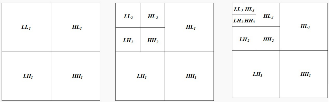 - 这个分解过程可以递归地对 LL 分量不断进行,从而得到一个多层次的、金字塔式的分解结构