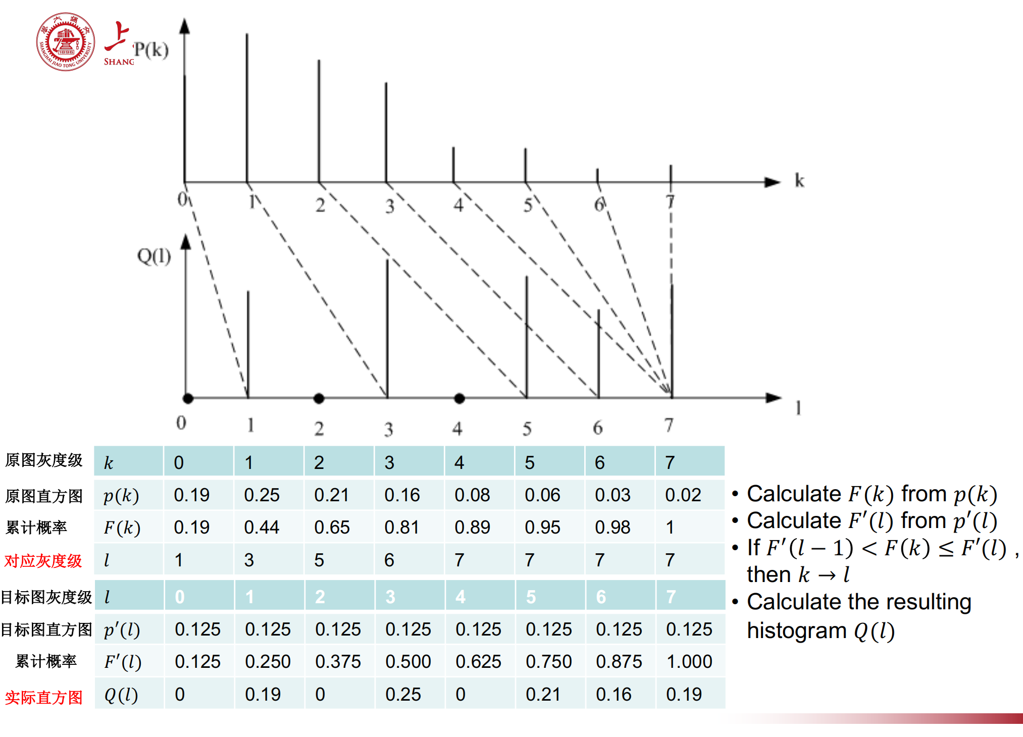 - 计算原始图像的直方图 及其累积直方图