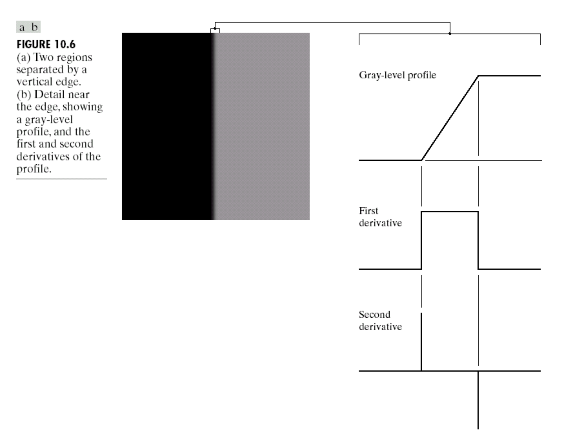 - 边缘 (Edge): 是一个局部 (local) 概念;它基于某一个点的灰度级不连续性的度量
